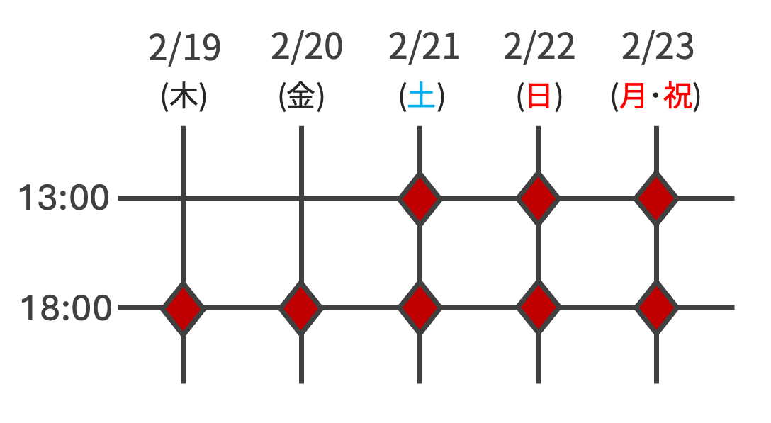 ※出演者及び公演スケジュールは予告なく変更となる場合がございます。予めご了承ください。